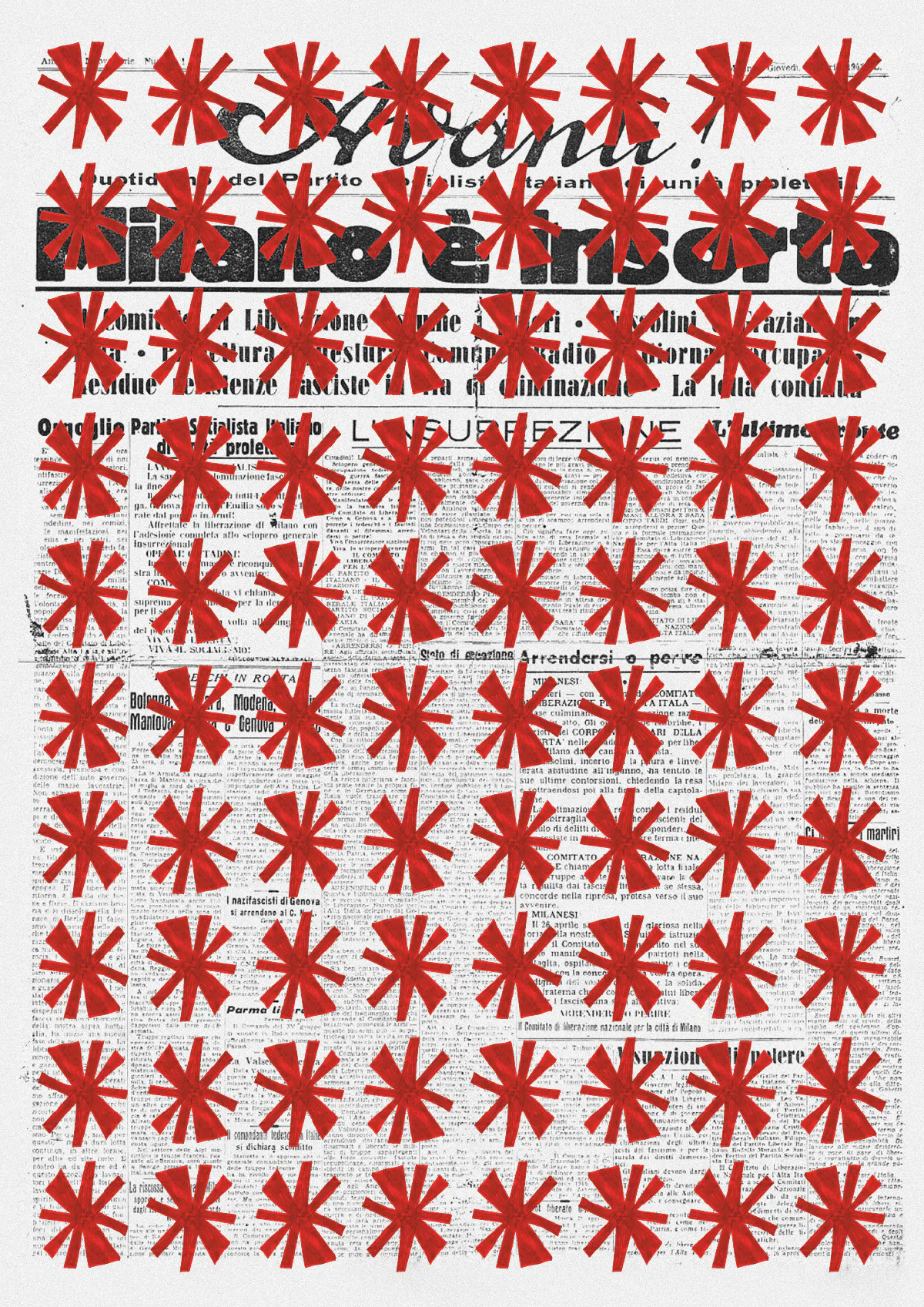 Ottanta stelle rosse brillano sulla prima pagina dell’Avanti! del 26 aprile 1945. Ottanta crepe, simboli di lotta e moniti volutamente ingombranti per una autonomia minacciata. La Resistenza prende vita dove la libertà è ancora da difendere.