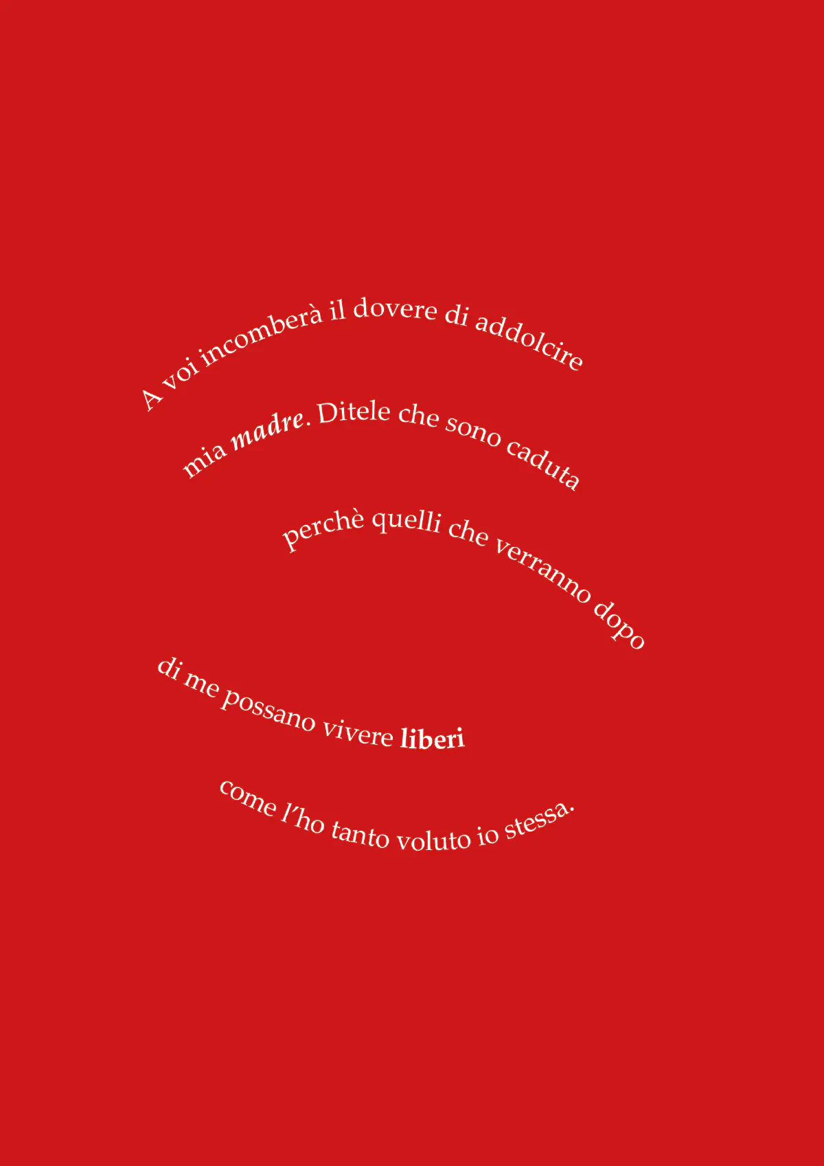 L’idea nasce dall’esigenza di mostrare i valori eroici delle Partigiane. Le parole tenaci dette da una donna pronta a soccombere pur della libertà, vengono raccontate attraverso l’amore sacrificato e la gloria del domani.