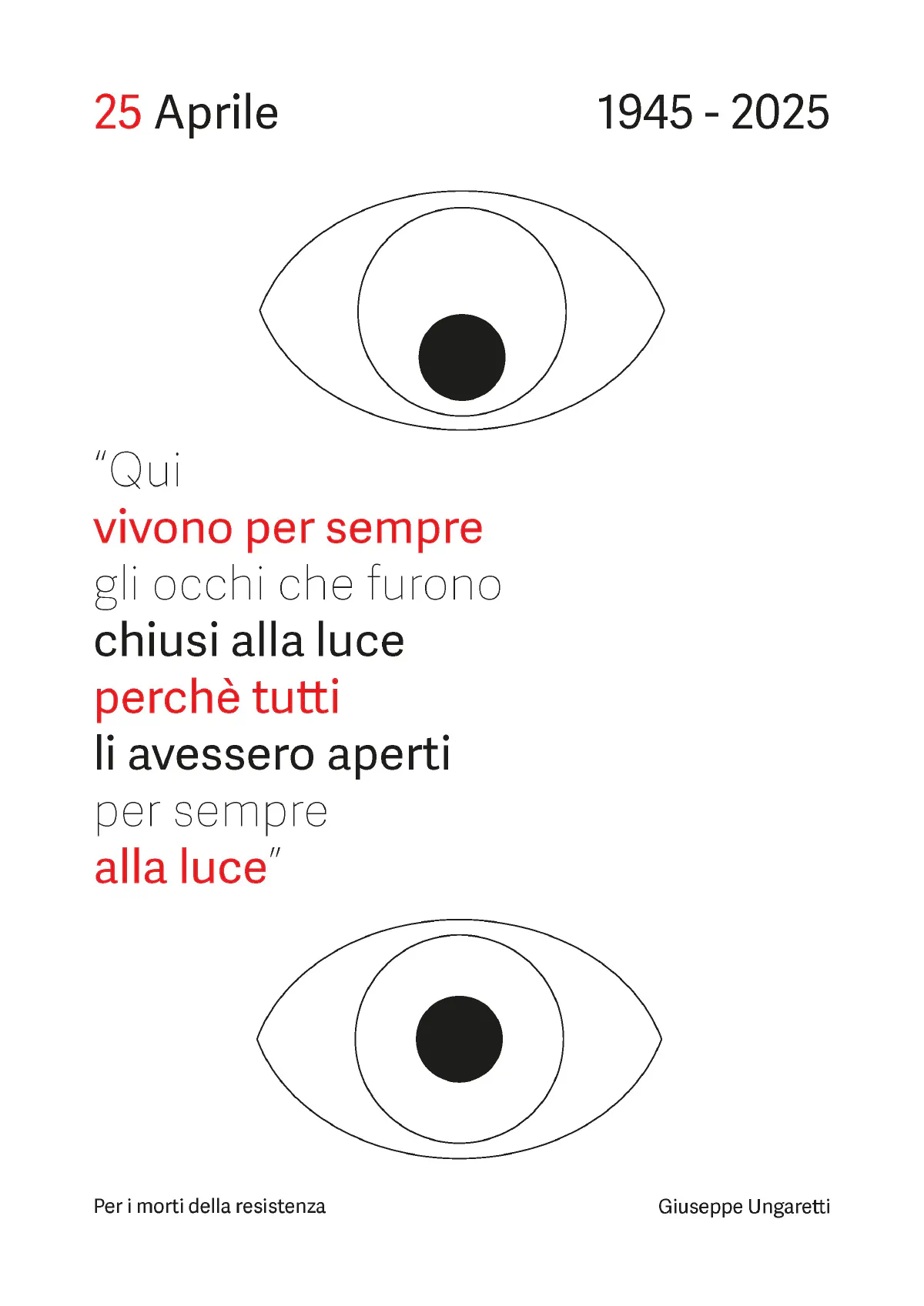 “Per i morti della resistenza” è una poesia di Giuseppe Ungaretti, scritta in versi liberi per ricordare gli uomini che si sono battuti affinché la libertà diventasse un bene comune. Il gioco di metafore tra occhi chiusi e aperti, mancanza di luce e presenza della stessa, diventa un gioco di sguardi tra passato e presente.