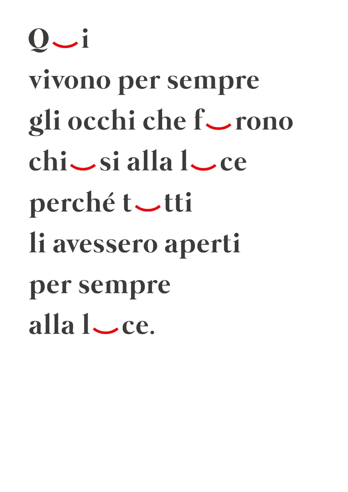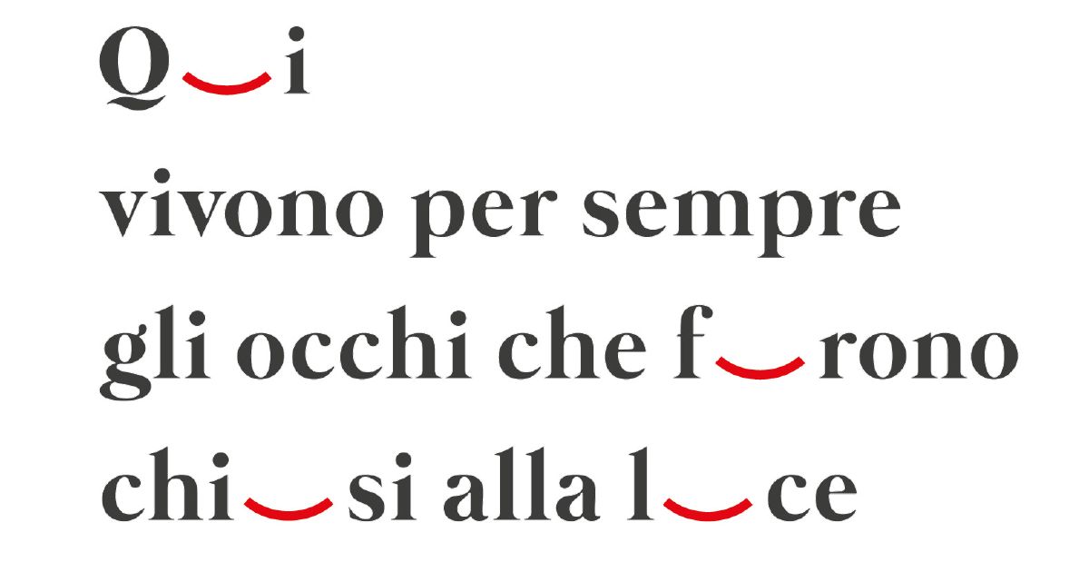 Nella poesia Per i morti della Resistenza, composta dal poeta Giuseppe Ungaretti, le lettere “u” sono state rimosse, per essere sostituite da un simbolo che evoca nella mente gli occhi chiusi dei partigiani caduti in battaglia e racchiude in sé un significato molto più ampio di sacrificio per la libertà.